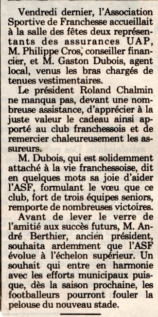 Nouvelles de l'A.S. Franchesse - La Montagne du 7 avril 1989