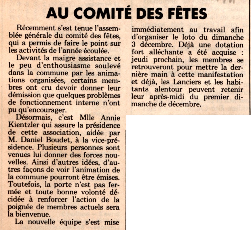 Au comité des fêtes - La Montagne du 19 novembre 1989