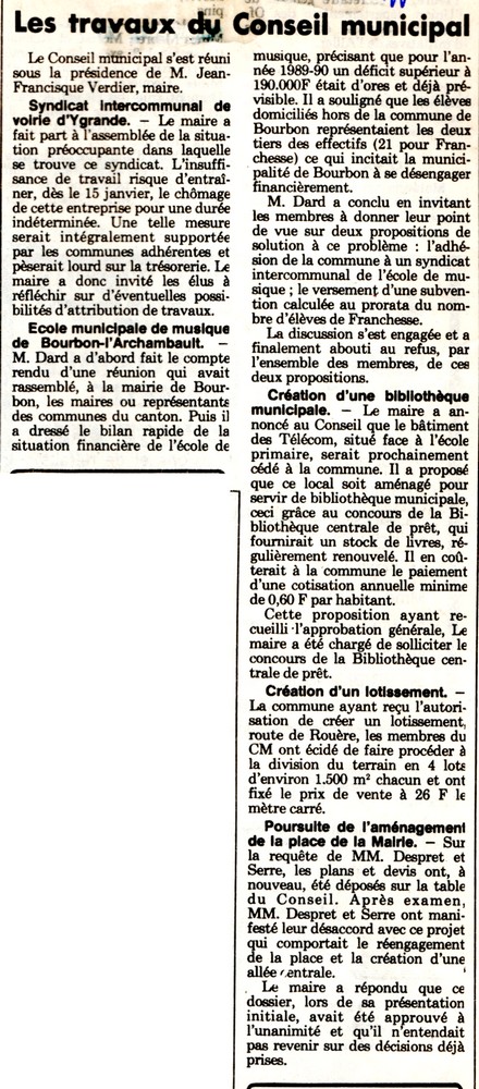 Au Conseil municipal - La Montagne du 4 décembre 1989