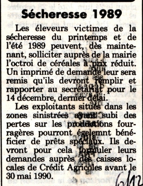 Sécheresse 1989 - La Montagne du 6 décembre 1989