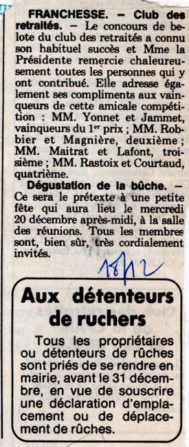 Club des retraités / Ruchers - La Montagne du 18 décembre 1989