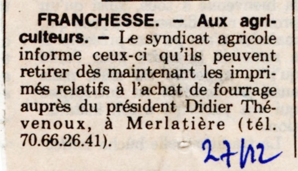 Aux agriculteurs - La Montagne du 27 décembre 1989