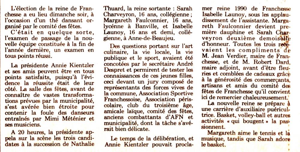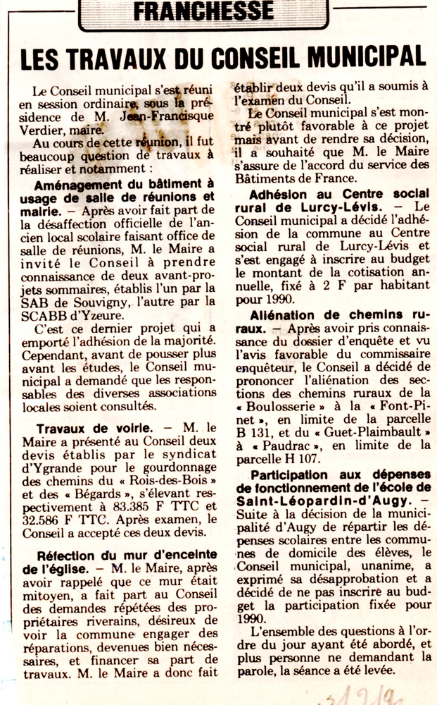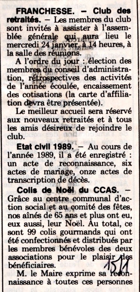 Petites nouvelles de Franchesse - La Montagne du 3 décembre 1990
