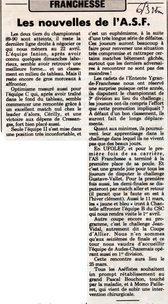 Les nouvelles de l'A.S.F. - La Montagne du 6 mars 1990