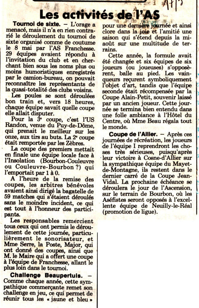 Les activités de l'A.S. - La Montagne du 17 mai 1990
