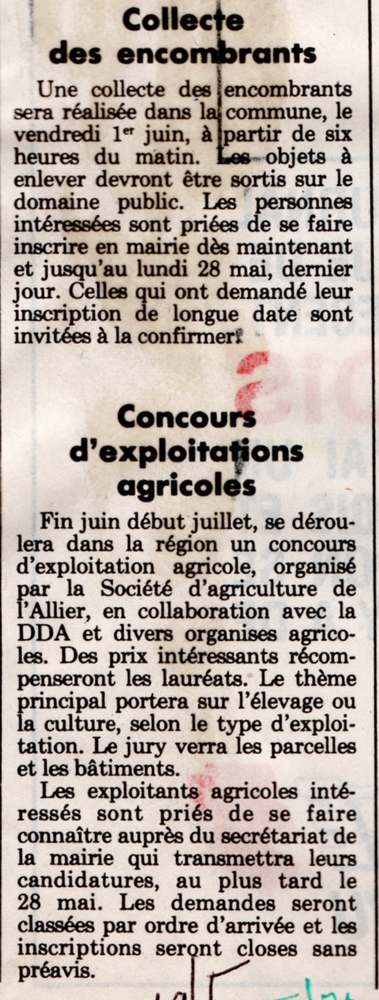 Collecte des encombrants / Concours d'exploitations agricoles - La Montagne du 19 mai 1990