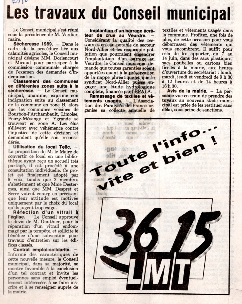 Avis de la mairie - La Montagne du 25 janvier 1990
