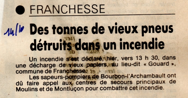 Des tonnes de vieux pneus détruis dans un incendie - La Montagne du 14 octobre 1990