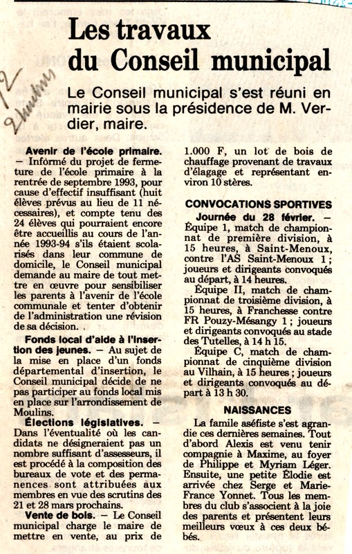 Les travaux du Conseil Municipal - La Montagne du 28 février 1993