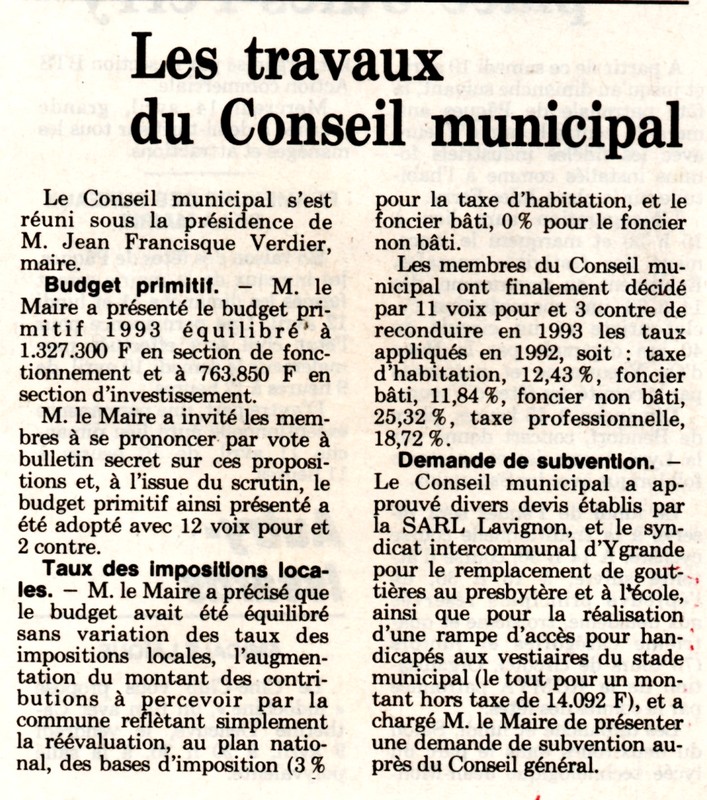 Les travaux du Conseil Municipal - La Montagne du 8 avril 1993