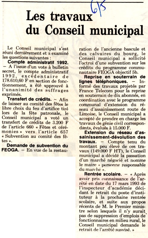 Les travaux du Conseil Municipal - La Montagne du 6 mai 1993