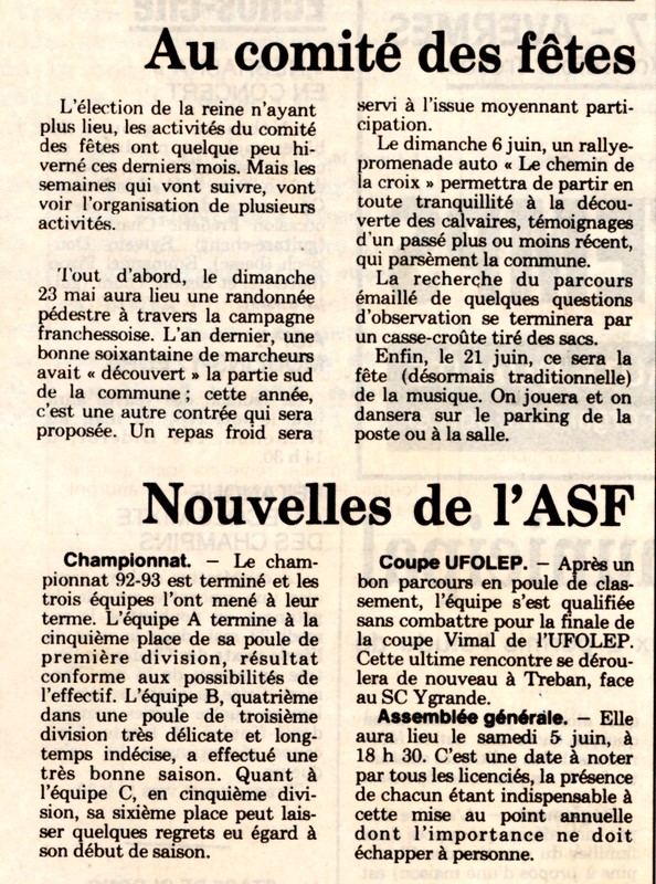 Nouvelles de l'A.S.F. - La Montagne du 22 mai 1993