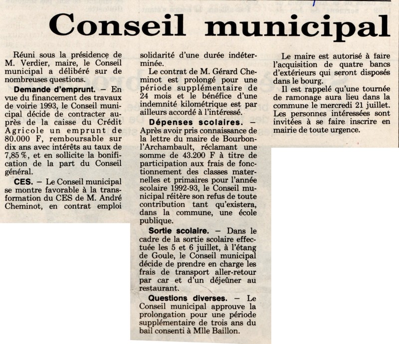 Conseil Municipal - La Montagne du 17 juillet 1993