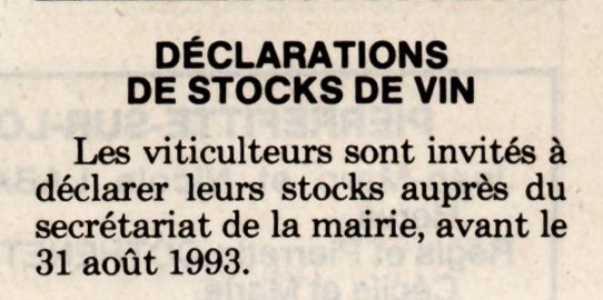 Déclaration de stocks de vin - La Montagne du 30 juillet 1993