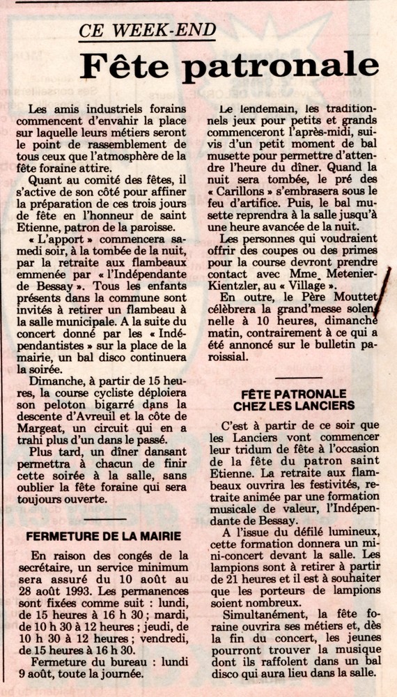Fête patronale - La Montagne du 7 août 1993