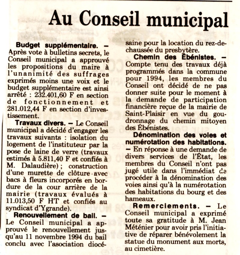 Au Conseil Municipal - La Montagne du 15 novembre 1993