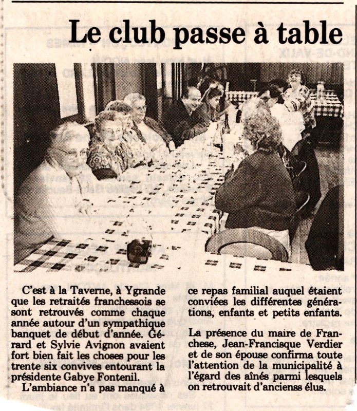 Le club passe à table / Les vœux de la municipalité - La Montagne du 28 janvier 1994