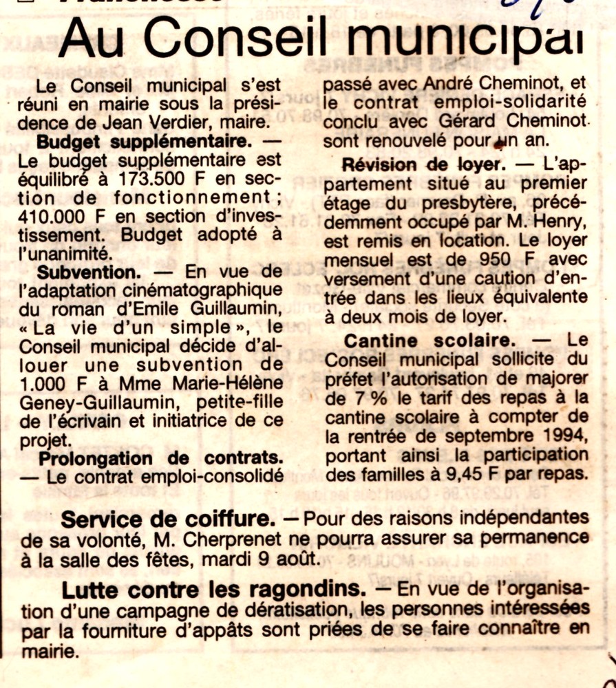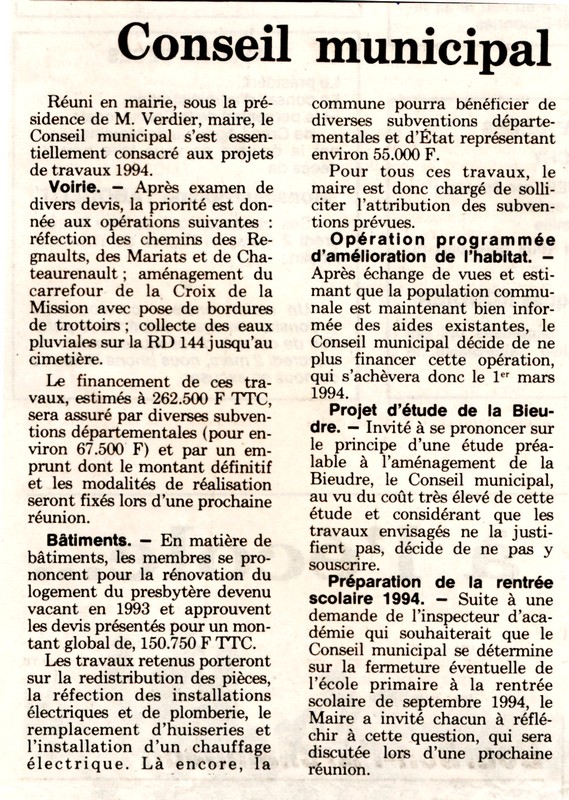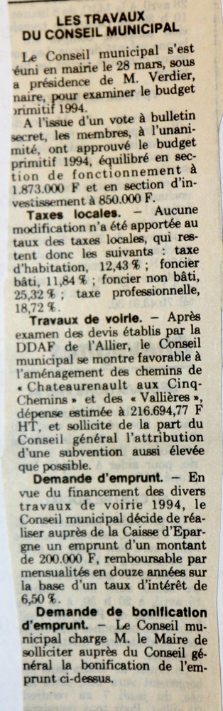 Les travaux du Conseil municipal - La Montagne du 5 avril 1994