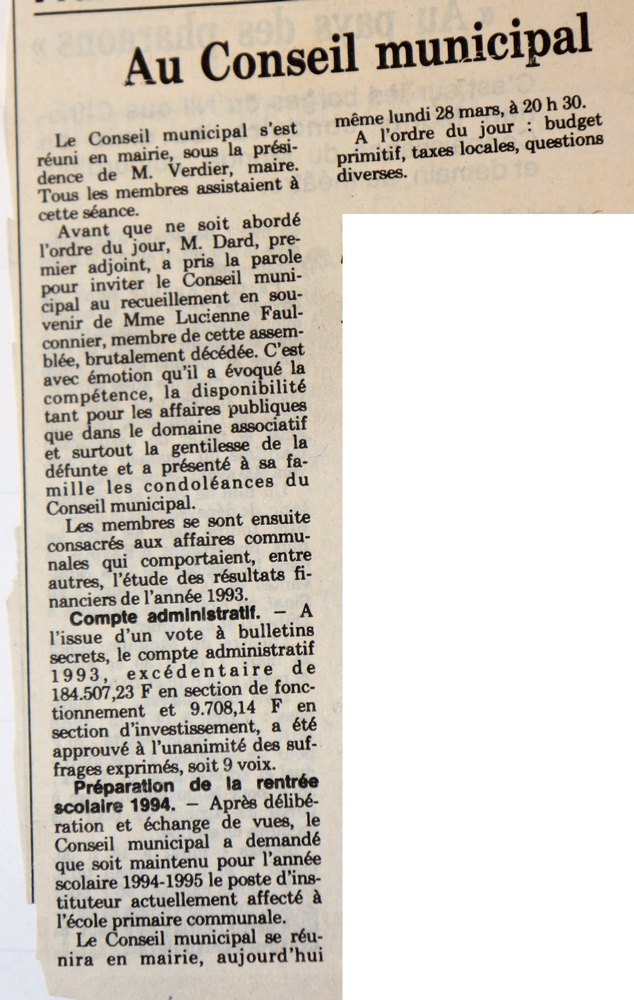 Au Conseil municipal - La Montagne du 28 mars 1994