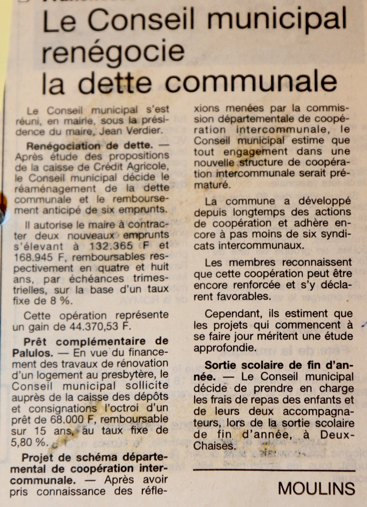 Le Conseil municipal renégocie la dette communale - La Montagne du 16 juin 1994