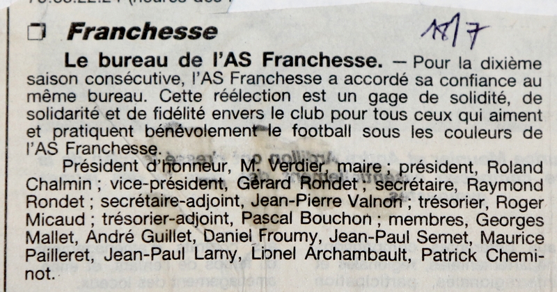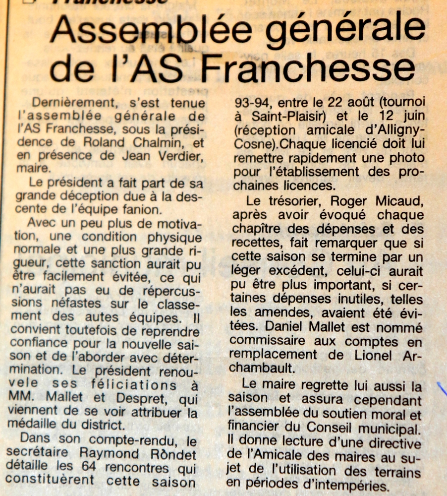 Assemblée générale de l'A.S. Franchesse - La Montagne du 16 juillet 1994