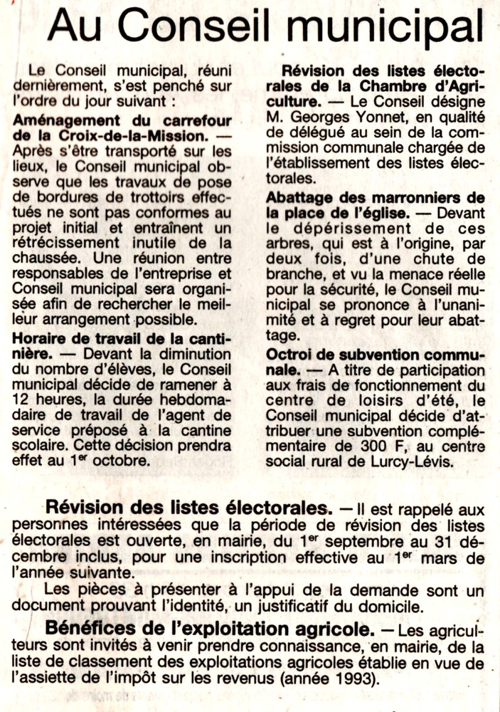 Au Conseil municipal - La Montagne du 30 septembre 1994
