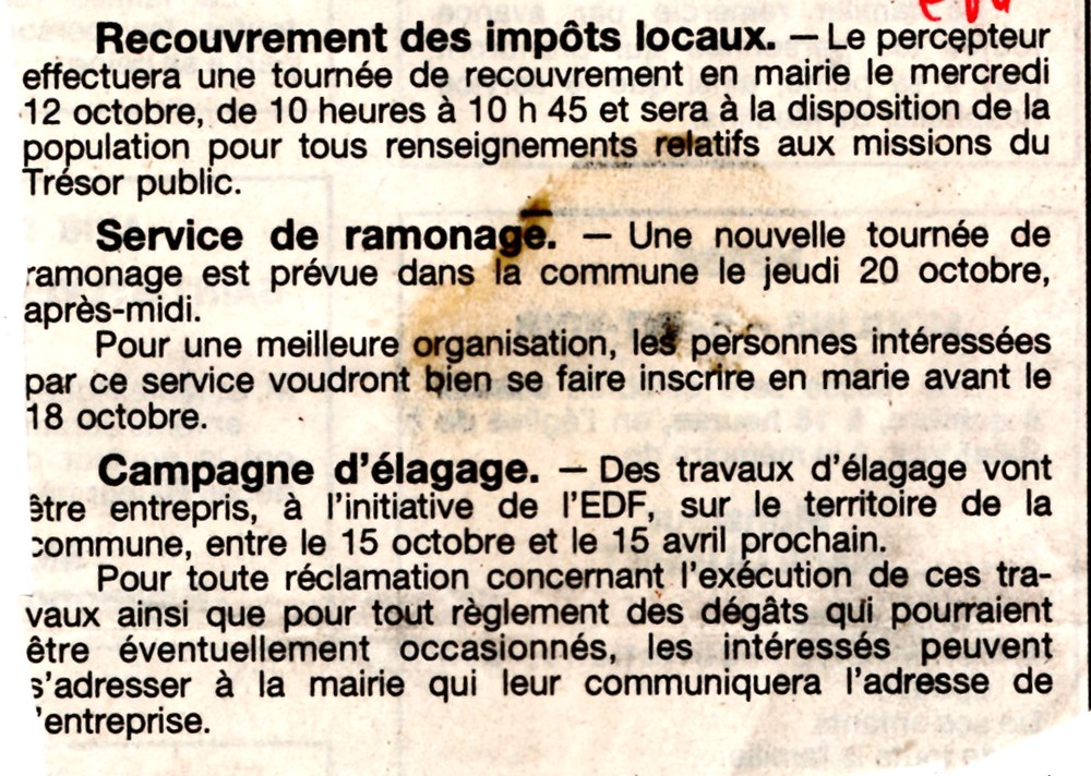 Impôts / Ramonage / Elagage - La Montagne du 6 octobre 1994