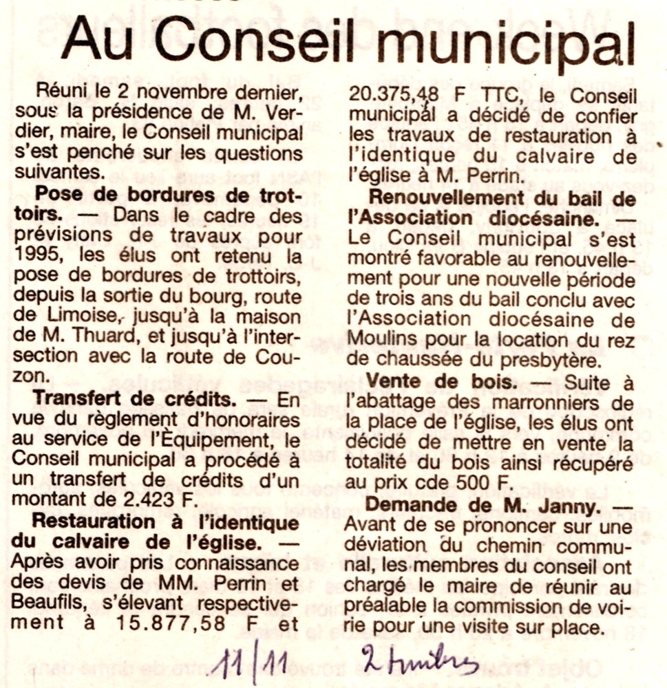 Au Conseil municipal - La Montagne du 11 novembre 1994