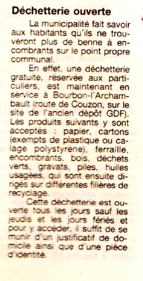 Déchetterie ouverte - La Montagne du 25 janvier 1999