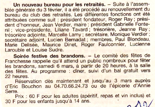 Un nouveau bureau pour les retraités / Soirée festive des brandons - La Montagne du 28 février 1999