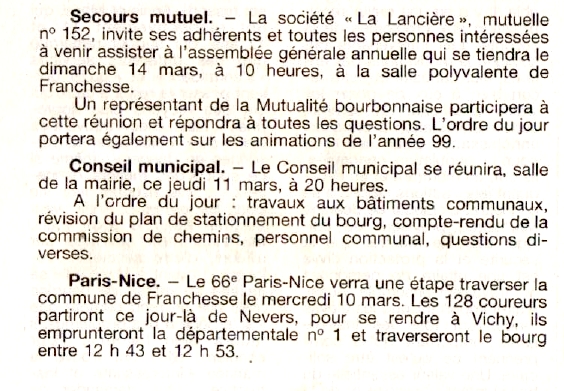 Secours mutuel / Conseil municipal / Paris-Nice - La Montagne du 9 mars 1999