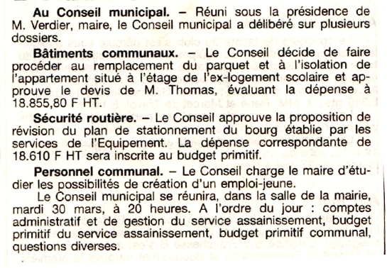 Au Conseil municipal - La Montagne du 20 mars 1999
