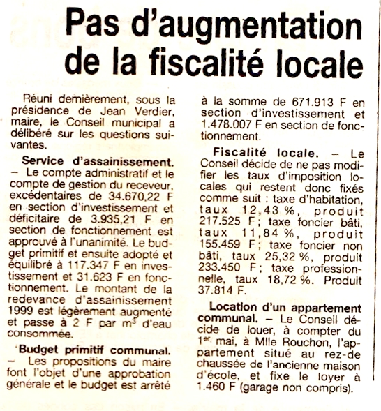 Pas d'augmentation de la fiscalité locale - La Montagne du 23 avril 1999