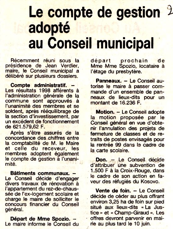 Le compte de gestion adopté au Conseil municipal - La Montagne du 2 juin 1999