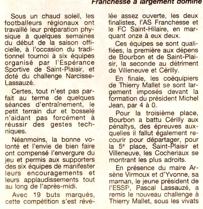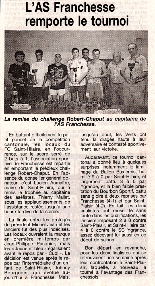 L'A.S. Franchesse remporte le tournoi - La Montagne du 3 septembre 1999