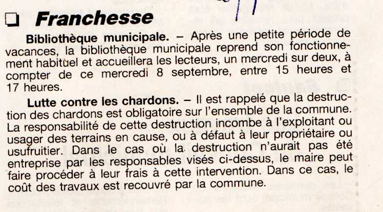 Bibliothèque municipale / Lutte contre les chardons - La Montagne du 6 septembre 1999