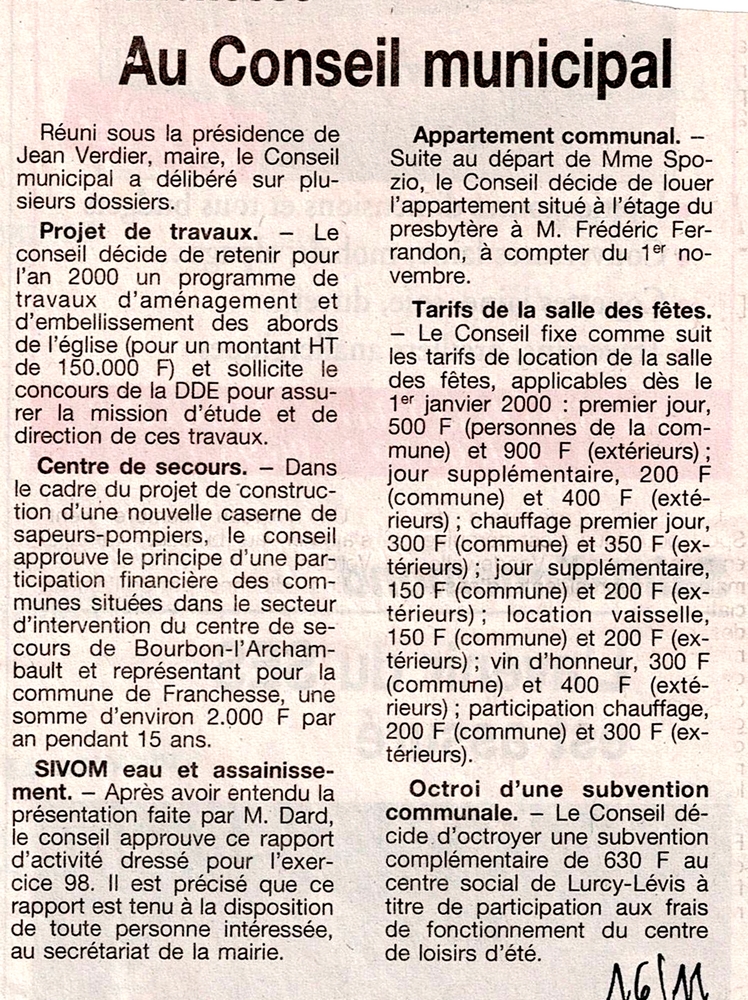 Au Conseil municipal - La Montagne du 16 novembre 1999