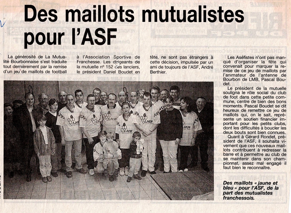 Des maillots mutualistes pour l'A.S.F. - La Montagne du 24 décembre 1999